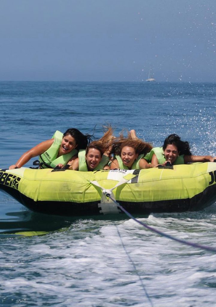 For maximum fun and adrenaline, try our awesome towable tubes : Sofa, airstream, donut’s.